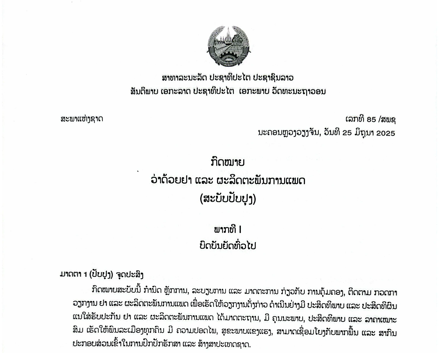 ກົດໝາຍວ່າດ້ວຍຢາ ແລະ ອຸປະກອນການແພດ ເລກທີ 85/ສພຊ